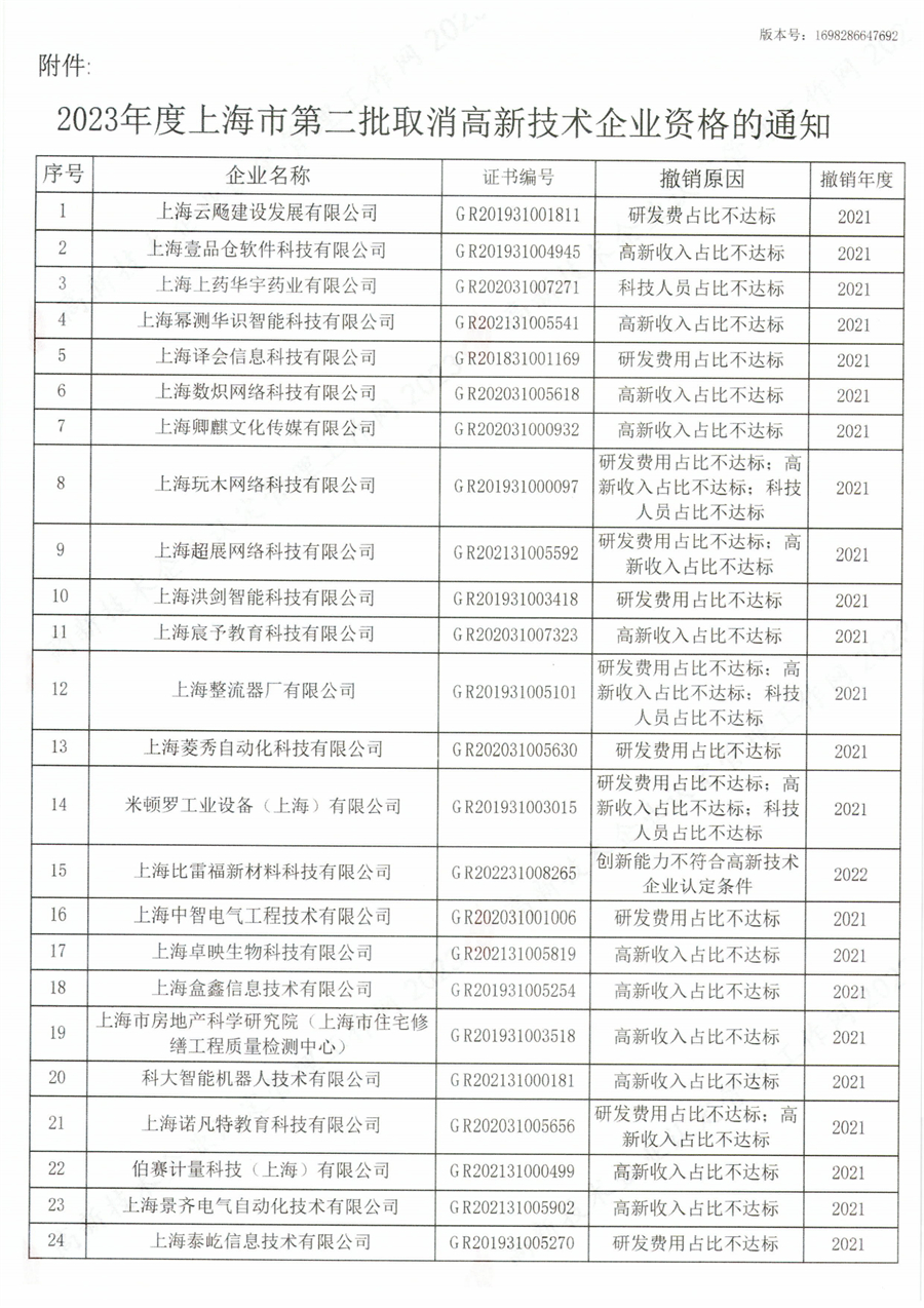 【简讯】2023年7月28日、2023年11月24日,高新技术企业认定管理管理工作网分别公布了《关于公告2023年度上海市第一批撤销高新技术企业资格的通知》《关于公告2023年度上海市第二批撤销高新技术企业资格的通知》的公告。承上信息说明上海的高新技术企业并非都能用来走人才引进落户,因为不是每家高新技术企业都属于真正的重点机构,甚至很多高新技术企业最后连资格证书都会被撤销。紧缺急需人才的引进单位要属于重点机构,而高新技术企业只是重点机构名单的“备选池”之一,只是顶了个重点机构的“名”。而很多高新技术企业连“高新技术企业”这个名也是冒名顶替的,严格核查根本不符合要求,随时可能被撤销。所以想通过顶个名就能办落户,是想简单了。其实重点机构人才引进和特殊人才引进,本质上是类似的。首先是单位要有实力,纳税要高,这才有资格竞争落户名额。其次还要看落户申办人是否真的属于一个紧缺急需的优秀人才。并非有个本科学历,社保交的高一点就能算紧缺急需人才了。落户政策规定的条件只是相当于告诉你,上海需要引进的人才“大致长什么样”,满足这个条件后,只是满足了“备入选”资格。而离最后“当选”还要经过层层审核选拔。 所以,不要觉得或者轻信把社保转到一家高新技术企业里就能落户上海,基本上只是相当于帮你弄了一个“参赛资格”,而最终结果,这家企业以及落户申请人都左右不了。提示:您规划落户,得走正规靠谱的通道,耍小聪明,可能将误了卿卿愿想。
