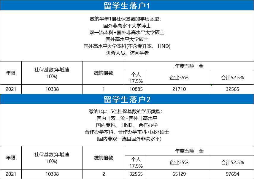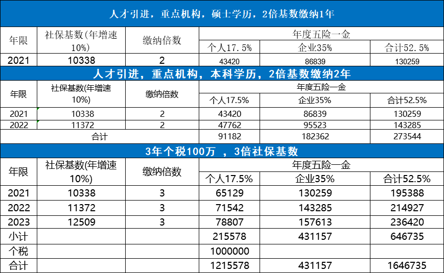 普通引进人才个人五险一金成本在4~9万,企业五险一金成本在8~18万,比起居转户省了很多。但如果企业没有高新等资格,还需要居间找高新技术企业,这笔费用在15-25万之间,专业不同,价格不同!硬走土豪路线,3年个税100万,实际含五险一金后,至少160万起步。人才引进,一人落户,全家跟随。留学生社保成本