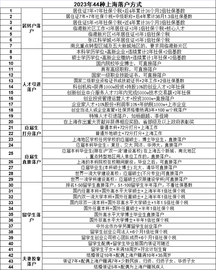 【 2023年上海落户方式及成本梳理 】