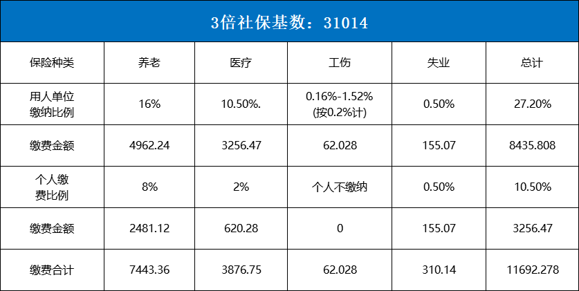 匹配3倍社保(封顶)基数:31014元/月