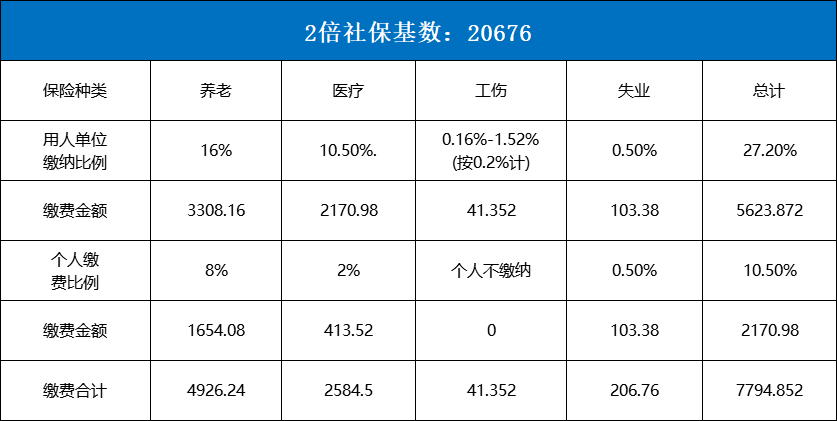 匹配2倍社保基数:20676元/月