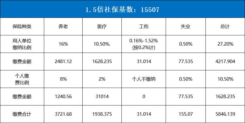 匹配1.5倍社保基数:15507元/月