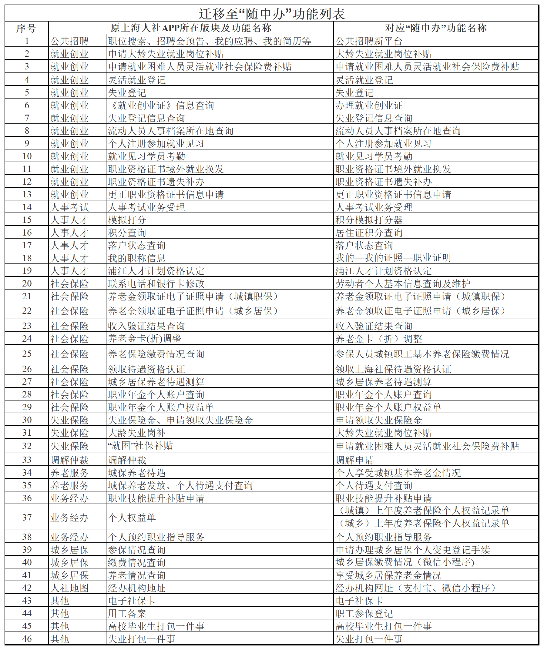 按照市政府2023年“一网通办”改革任务要求,上海人社APP相关功能将迁移至“随申办”,请您至“随申办”办理或查询相关业务。另有部分功能将通过有关网站等渠道继续提供服务。详见附表。 为此,自11月22日起,上海人社APP将停止对外服务,给您带来的不便,敬请谅解!如有疑问,请致电12333热线咨询。