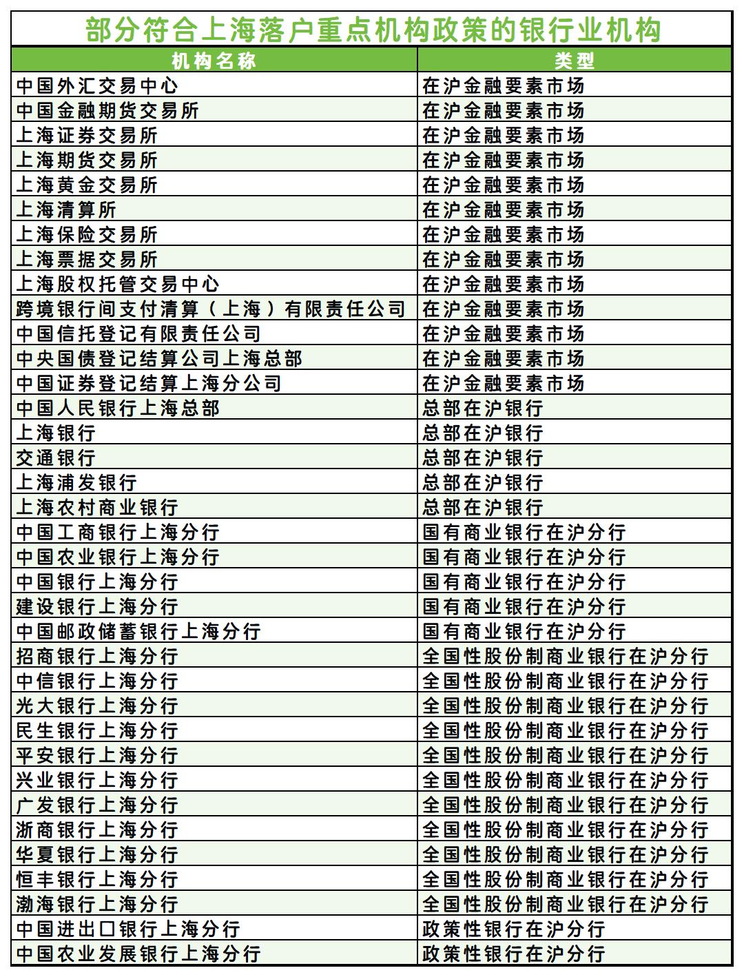 二、符合上海落户重点机构政策的上海银行业机构名录: