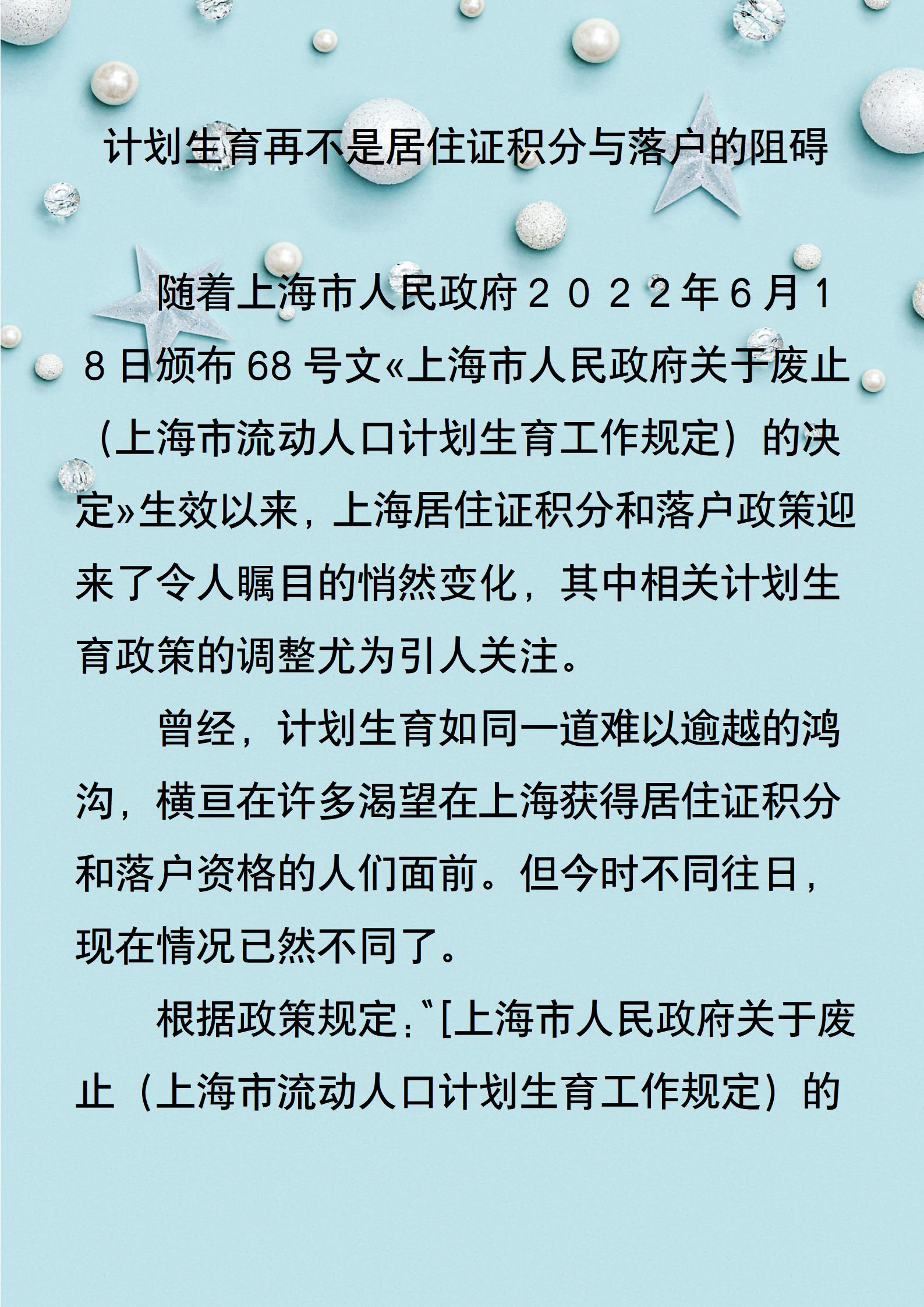 计划生育再不是居住证积分与落户的阻碍