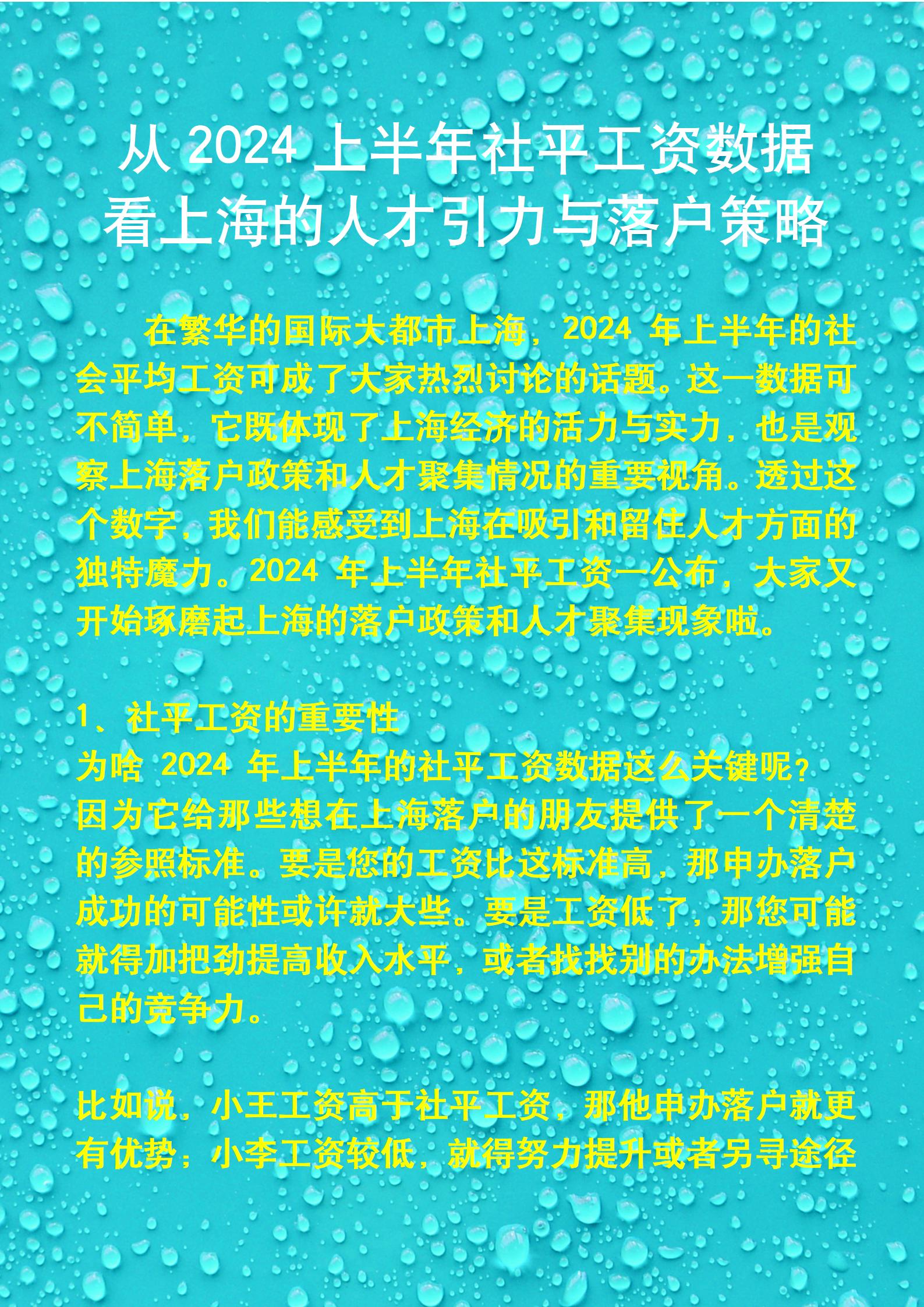 从2024上半年社平工资数据看上海落户策略